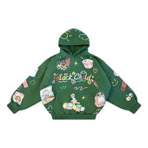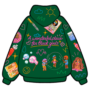 DESCRIPTION šThe "Childhood Hoodie" brings back the good old days ā hot combs, barrettes, double dutch, Kool-Aid, and cartoons all day. A cozy reminder of the best parts of growing up.