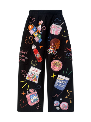 The "Childhood Sweatpants" bring back the good old days — hot comb Saturdays, barrettes, Kool-Aid, and cartoons all day. Now you can wear the best parts of your childhood <3